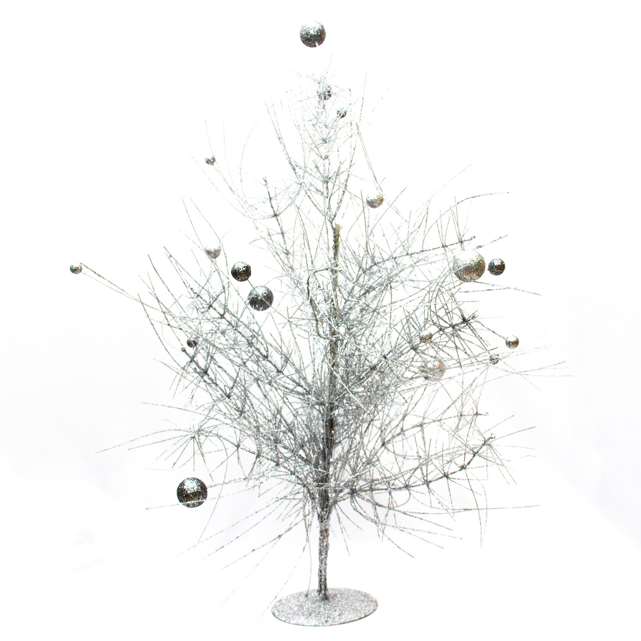 Дерево на підставці з кулями, 60 см, сріблястий, метал, пластик Новорічна декорація (770038-1)