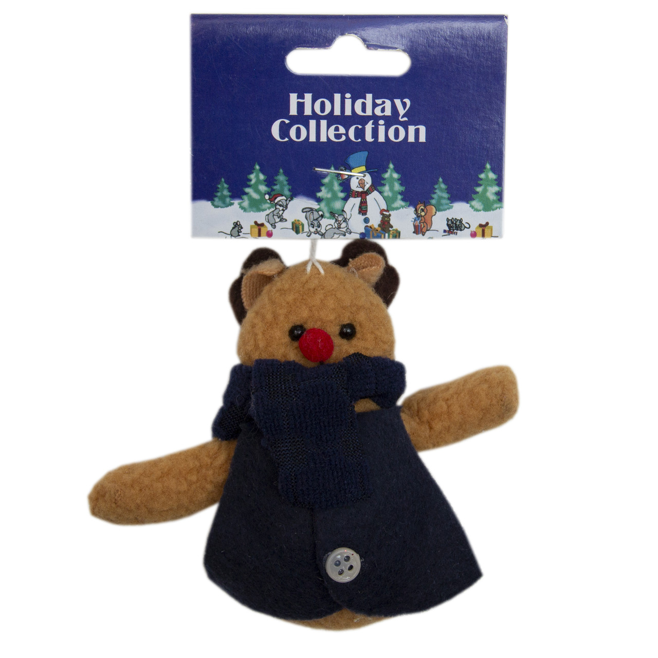 М'яка ялинкова іграшка Ведмідь з синім шарфом, 9 см, коричневий із синім, текстиль, новорічна фігурка (000258-11)